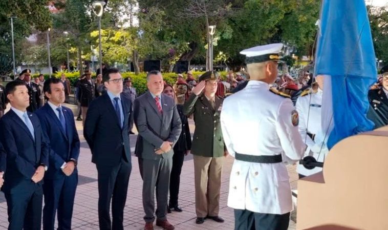 En primera instancia, en la Plaza 25 de Mayo se hizo la presentación de la Agrupación 25 de Mayo y el saludo inicial al jefe de Gabinete, Juan Luna, quien encabezó esta actividad.