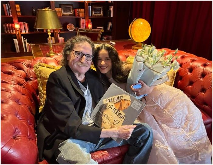 Antes de la despedida, los artistas intercambiaron souvenirs de sus respectivas cosechas, como se ve en la foto a la que accedió este medio. Charly le obsequió un vinilo de La hija de la lágrima, su ópera rock editada en 1993 y firmado de puño y letra. Por su parte, Rosalía intervino en modo saynomoreano la angelical portada de su álbum Lux. “Para Charly, la leyenda. Con amor”, firmó la artista con marcador negro y mucha gratitud. Y se llevó un tupido ramo de rosas.