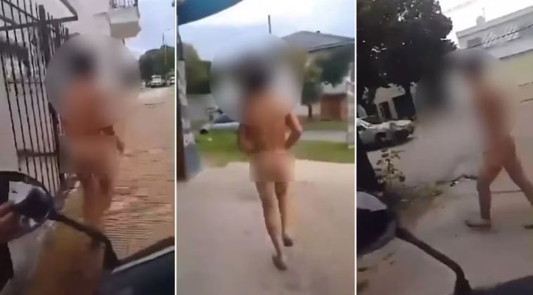 “Este rastrero entró a robar a mi casa. Corré que te voy a matar. Vos no vas a robar más, ratita”, dijo la víctima del robo a bordo de un rodado, mientras grababa con su celular al adolescente que corría desnudo.