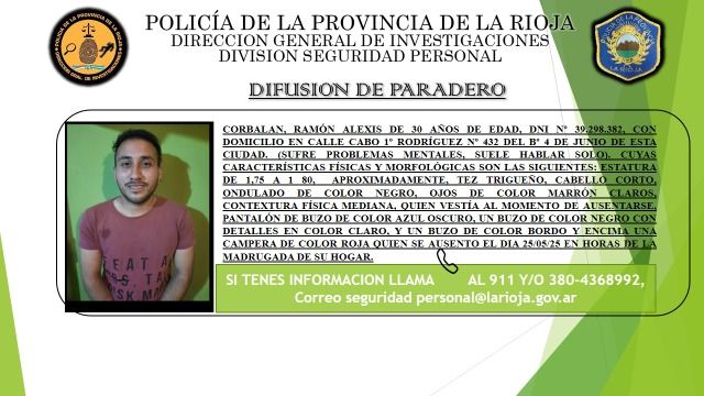 Cualquier información se puede comunicar al 911 o al número 380-4368992, así como también por correo electrónico a seguridad.personal@larioja.gov.ar
