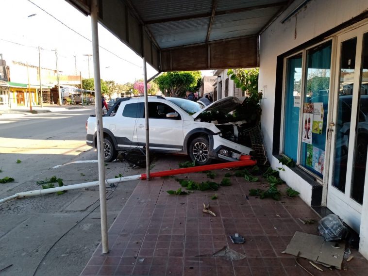 Al perder el control de su vehículo impactó con un poste de luz y luego quedó incrustado en una casa. Debido al impacto Oropel sufrió escoriaciones varias en el rostro.