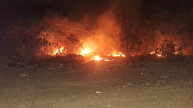 Una vez en el lugar constata el incendio de pastizales, en ese momento arriba al lugar personal de Bomberos Voluntarios quienes realizan el enfriamiento.