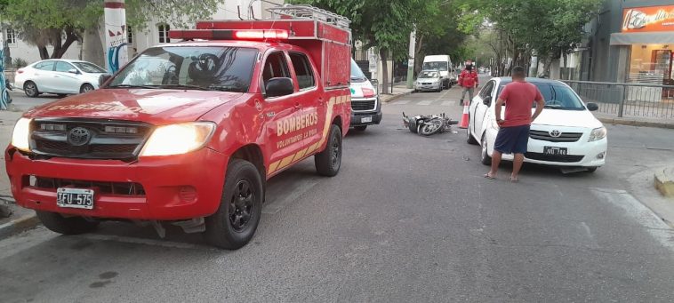 En la tarde del pasado sábado, por calle Santa Fe y Copiapo, una motociclista chocó a un automovilista.