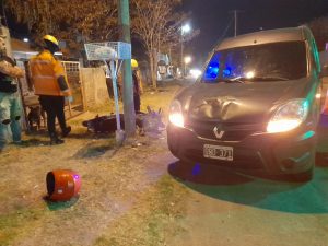 Siendo las 21:47 hs Bomberos Voluntarios Águilas de Acero se dirigen por calle San Luis entre Chubut y Neuquén a un siniestro vial. Al llegar al lugar se encuentran con el ciudadano Duarte Miguel (29), domiciliado en el barrio Yacampis quien circulaba al mando de una motocicleta marca Honda wave 110cc y por razones a establecer termina impactando con un automóvil marca Renault Kangoo conducido por el ciudadano Velázquez Claudio (41), domiciliado en el barrio San Martin.