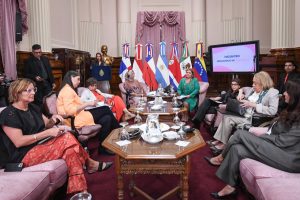 Y prosiguió: “Existe una enorme cantidad de temas en los que podemos trabajar de forma conjunta y, sobre todo, teniendo en cuenta la tarea que realizan cada una de ustedes por sus Estados. Hoy venimos a plantearnos cómo, entre todas, podemos pensar un mundo más equitativo, más igualitario, garantizando un futuro digno a los jóvenes”.