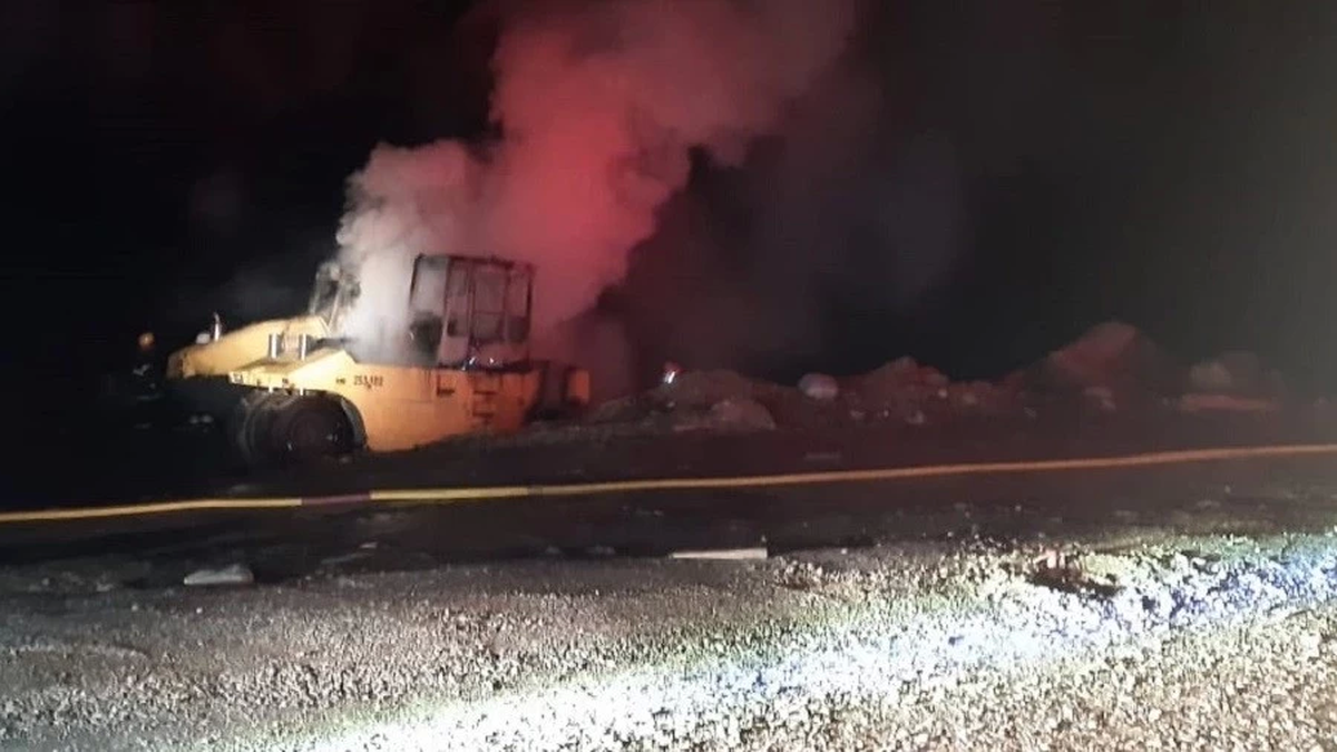 Una vez que el empleado de seguridad escapó del lugar, los atacantes incendiaron cuatro máquinas viales y la casilla donde se apostaba el sereno.