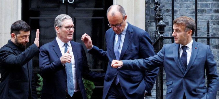 El presidente ucraniano Volodimir Zelenski fue recibido por el primer ministro británico Sir Keir Starmer, el presidente francés Emmanuel Macron y el canciller alemán Friedrich Merz. Foto EFELa estrategia expresa la preocupación de que, a más tardar en unas décadas, ciertos miembros de la OTAN se convertirán mayoritariamente en no europeos. El documento presenta a los europeos como el punto débil de la OTAN y cuestiona la alianza con ellos y sus diferencias ideológicas.