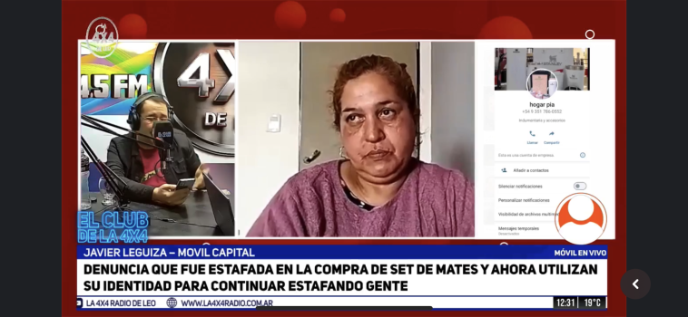 Comentó también que varias personas llegan a su domicilio con reclamos varios sobre estafas pensando que es ella la que vende los productos