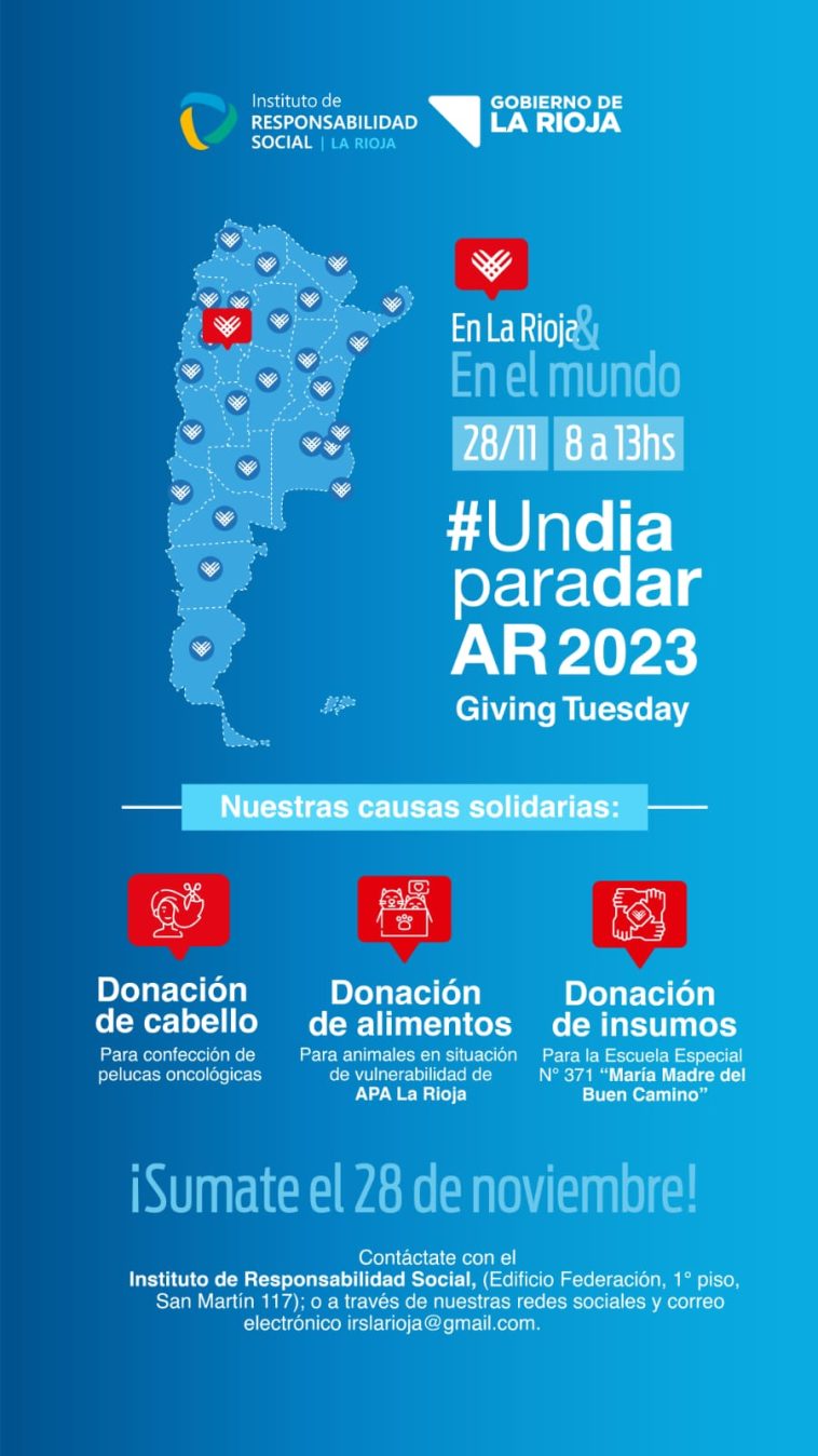 “Este año se eligió el 28 de noviembre y ese día las personas buscamos realizar diferentes acciones solidarias. Es un evento para contrarrestar la cultura consumista”, indicó la funcionaria. El objetivo es realizar acciones por otras personas sin buscar nada a cambio.