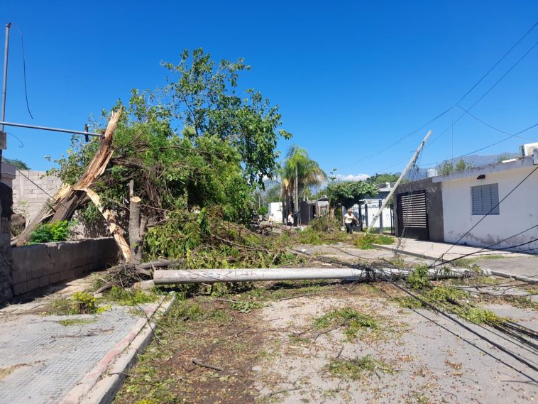 Uno de ellos es el barrio Joaquín Víctor González, se trata de la calle Tama, entre Talampaya y Portezuelo, donde hay postes y árboles caídos que obstaculizan la calzada.