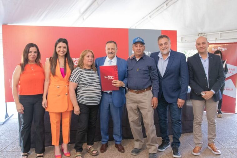En el marco de las leyes 6.695 y 7.165 de Saneamiento de títulos para la Regularización dominial, el Ministerio de Vivienda, Tierras y Hábitat Social, a través de la Secretaría de Tierras, hace entrega de 29 escrituras a vecinos del barrio Nueva Esperanza y 93 del barrio La Cañada, en el departamento Capital. Y también escrituras a la Comisión del Club Deportivo Malanzán. La actividad se concretó este miércoles, en la Residencia del Gobernador.