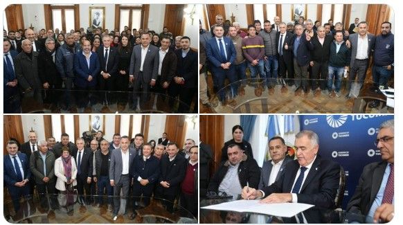 Estuvieron presentes en la firma de cada acuerdo el ministro de Gobierno y Justicia, Regino Amado; el ministro de Economía y Producción, Daniel Abad; el ministro del Interior, Darío Monteros; y el intendente de Trancas, Antonio Moreno. También nos acompañaron el secretario de Gobierno y Relaciones Institucionales, Raúl Albarracín; el secretario de Acción Política y Comunitaria, Daniel García. De las rúbricas participaron los secretarios generales de la UGE, Andrés Jaime; de Vialidad, Víctor Hugo “Kiko” Bazán; y del Frente de Gremios Estatales y Municipales, Diego Jimenez, Luis Alarcón y Vicente Ruiz.