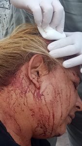 “Este chico le estaba pegando a la novia, salí y afuera estaba jeshula con su hermana, les dije por favor que bajaran la música, llamé a la policía y volví a meterme a mi casa, seguía el ruido y volví a comunicarme con la policía, salió de nuevo este chico con su novia, y les pedí por favor que se vayan a dormir. Él me decía yo soy tranza, yo le dije que no me importa, que yo sé que él es un mata gente, yo laburo para mantener a mis hijos. Comenzó un forcejeo, y este joven me golpea con la botella en la cabeza”, relató Noelia.