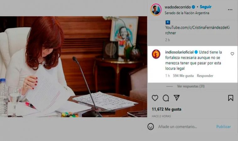 En esta oportunidad, en tanto, se pudo escuchar la voz del propio músico, gracias a una gestión de su esposa, Virginia Mones Ruiz. “Hola, habla Indio. El interés que me mueve al enviar este mensaje es sumarme a las voces que intentan evitar que la Justicia cometa uno más de los desatinos que se vienen sucediendo. Todos esos actos discriminatorios e injustos que se vienen cometiendo contra la vicepresidenta. Yo pocas veces vi operativos, en circulación exigida, como los que sufrió en otros momentos. Pero en este momento han pasado una línea”, comenzó diciendo.
