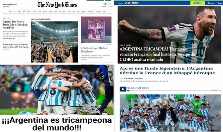 Los medios del mundo muestran en sus portadas la conquista de la Selección Argentina en el Mundial de Qatar 2022 tras vencer por penales a Francia.