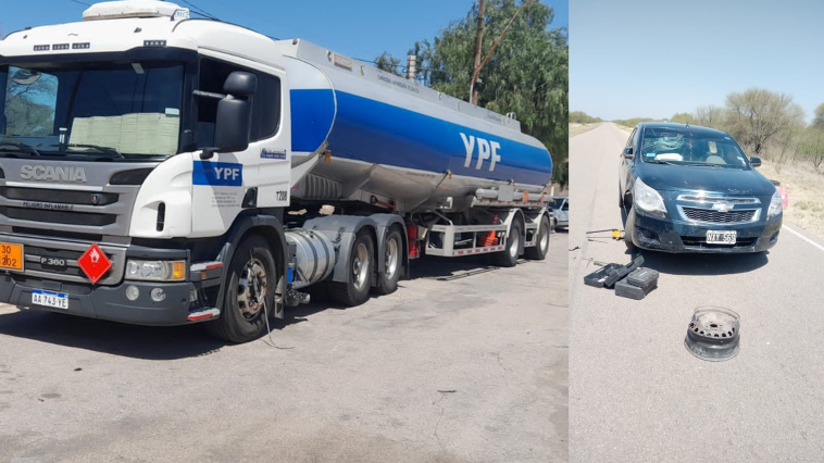 Un Camión Scania que transportaba gasoil, al mando de Fernández Miguel Eduardo oriundo de la provincia Córdoba, sufrió el impacto de un automóvil Chevrolet Cobalt en el que circulaba Pereyra Reina Mabel, acompañada por Gómez Isolina Sixta, Pereyra Francisco Humberto y Romero Erica Celeste, todos mayores de edad.