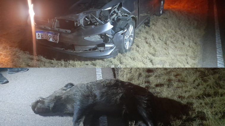 En la ocasión, impactaron contra un jabalí de gran porte, que se cruzó en la calzada, ocasionando importantes daños materiales en el rodado, y ocasionando la muerte del animal, en tanto que todos ocupantes resultaron ilesos.
