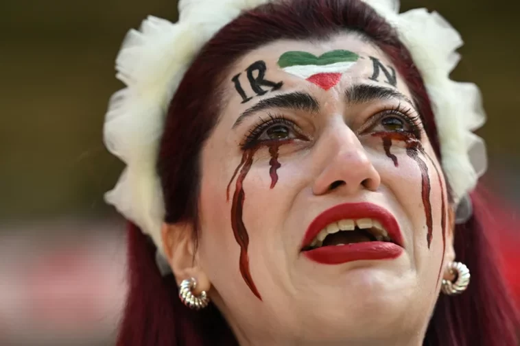 Una mujer de 35 años llamada Maryam, que al igual que otros hinchas iraníes se negó a dar su apellido por miedo a las represalias del gobierno, comenzó a llorar cuando hombres gritando y tocando bocinas la rodearon y filmaron su rostro de cerca. Llevaba pintadas en la cara las palabras “Woman Life Freedom”.