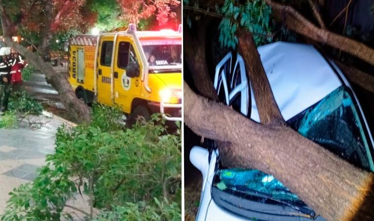 Durante el evento, que se desató pasadas las 23.30, con tormenta eléctrica y viento, se registraron ráfagas de 110 km sobre la ciudad y la lluvia caída fue de 14 mm.