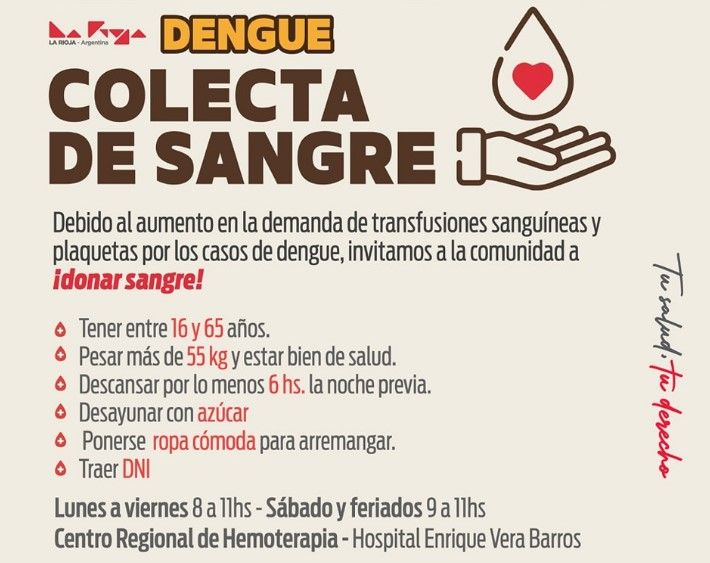 Las y los interesados deben concurrir al Centro Regional de Hemoterapia, en el Hospital Vera Barros, de lunes a viernes de 8 a 12 y sábados y feriados de 9 a 11 horas.