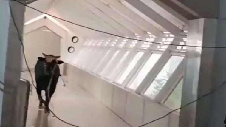 El toro que se había escapado de su cercado, no lejos del banco, corrió por el establecimiento de la sucursal antes de entrar en ella, señaló Israel Hayom al difundir las imágenes del incidente.