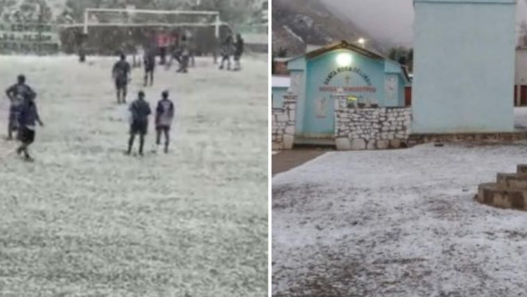 El pueblo jujeño de Caspalá, en el departamento de Valle Grande, registró la caída de nieve tras el brusco descenso de la temperatura en esta zona del país, y vistió de blanco el paisaje característico de los altos valles, lo que sorprendió a sus pobladores, muchos de los cuales realizaban actividades al aire libre.