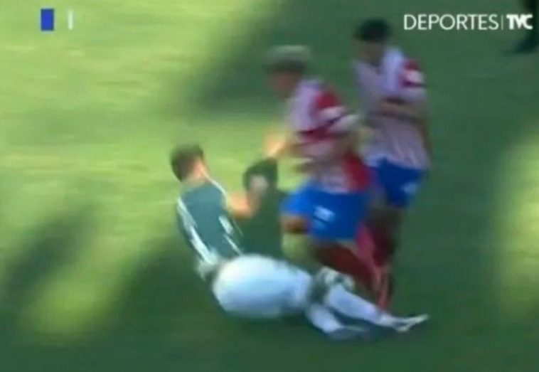 El jugador André Orellana protagonizó una brutal patada que está recorriendo el mundo, ya que derribó y lesionó a dos rivales al mismo tiempo durante el encuentro entre Marathón y Olimpia, por la fecha 8 del fútbol de Honduras.