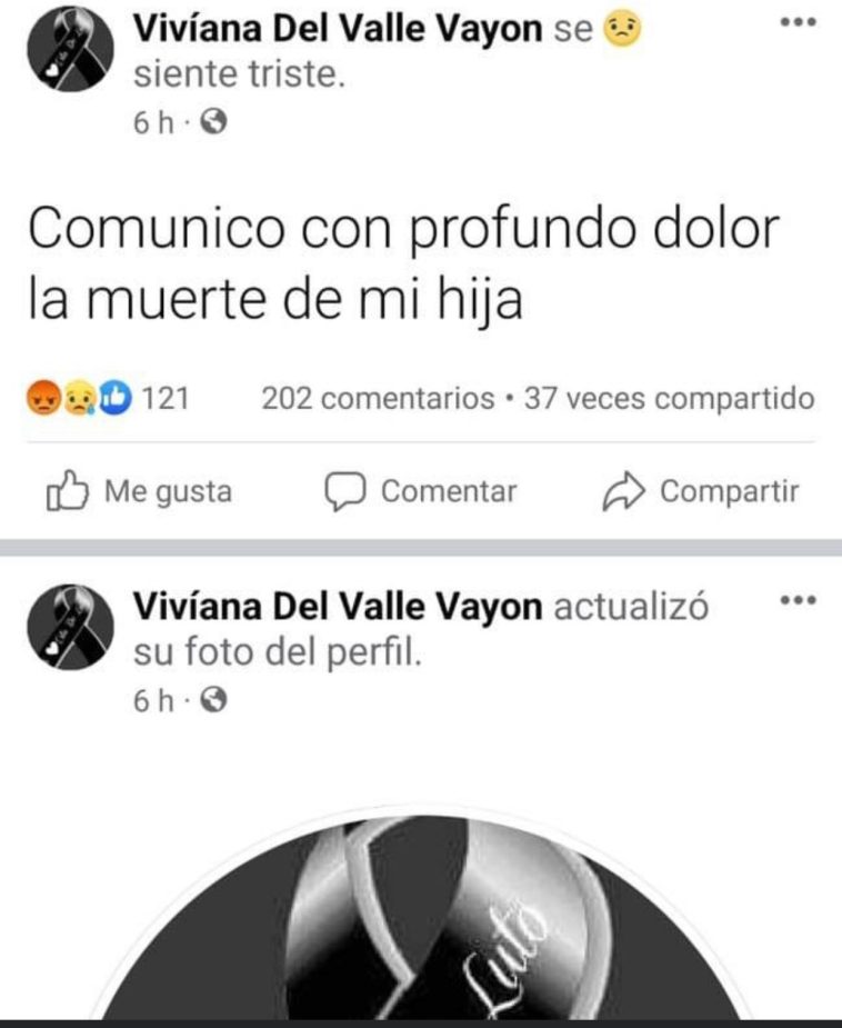 Viviana Del Valle Vayon publicó este sábado la confirmación de la muerte de su hija de 14 años.