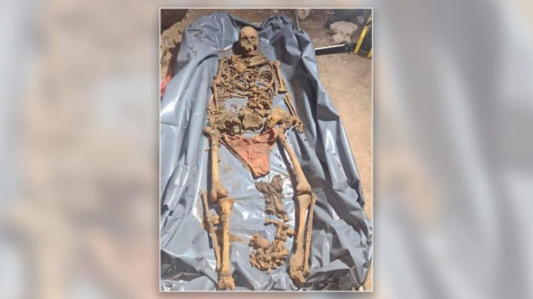 Finalmente, los forenses recuperaron el 90% de un esqueleto, que se presume es de una mujer, añadieron los voceros.