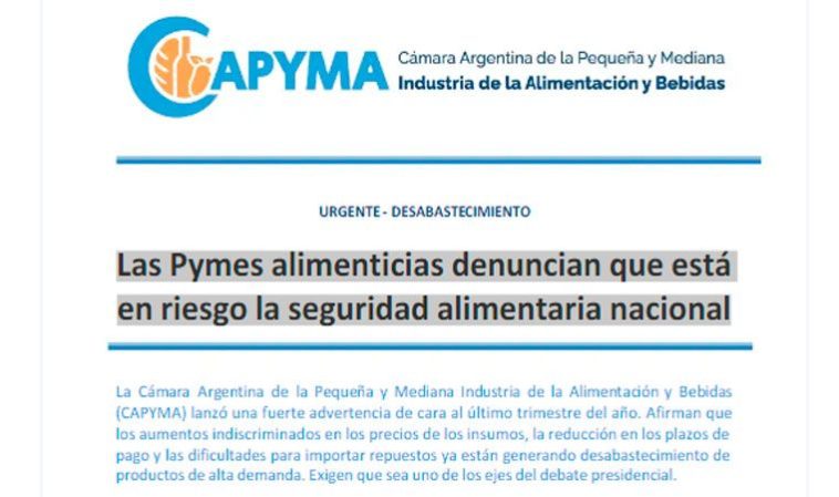 Así lo denunció la Cámara Argentina de la Pequeña y Mediana Industria de la Alimentación y Bebidas (CAPYMA). Ornella C. Nacht, ingeniera en alimentos y Presidenta de CAPYMA, aseguró que “en lo que respecta a la cadena de suministro, los proveedores achicaron notablemente los plazos de pago, generando una inevitable incertidumbre entre todos los eslabones de la industria”. Según la entidad, esta situación genera incertidumbre para el último trimestre del año