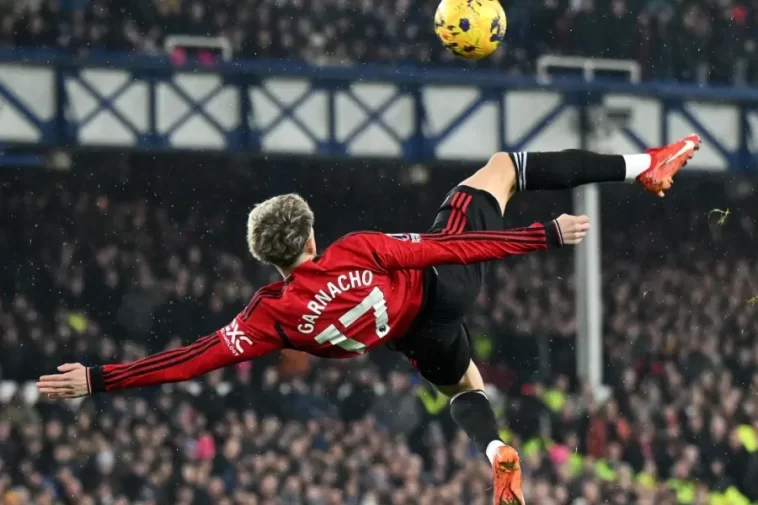Luego de un centro desde la derecha del portugués Diogo Dalot, a los dos minutos del primer tiempo, Garnacho realizó una volea acrobática para adelantar rápidamente a Los Diablo Rojos en el marcador.