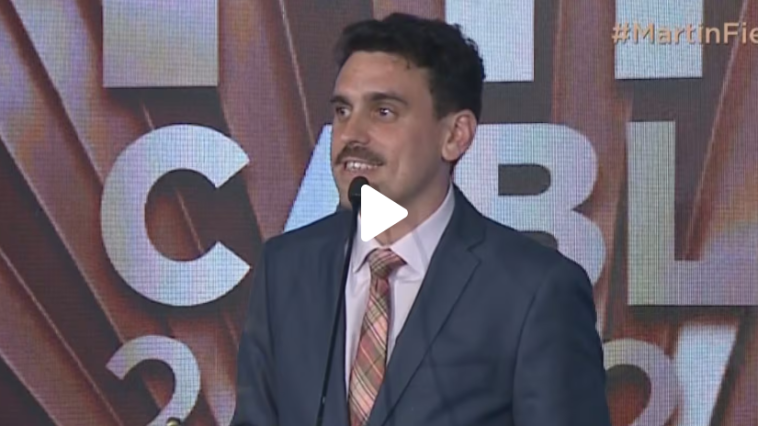 Manu Jove se llevó el premio Martín Fiero de Cable a Mejor Cronista/Movilero. A la hora de agradecer la estatuilla, el periodista de TN valoró el trabajo de sus compañeros de canal y enumeró las situaciones a las que se enfrentan los que van a buscar las noticias a los lugares de los hechos.