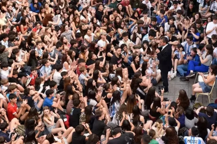 “No hay mayor libertad que ustedes puedan elegir donde estudian y no tengan que andar mandando un voucher o un cheque para ver si pueden estudiar”, explicó el ministro, en clara alusión a la propuesta de Milei, a quien no nombró en toda la tarde. Buscó dar un discurso limpio de cuestionamientos al candidato de La Libertad Avanza (LLA) y evitar la confrontación. Un mensaje directo al electorado joven.