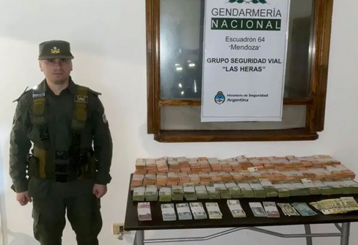 Más de 40 millones de pesos en distintas monedas fueron secuestrados durante un control de rutina realizado por Gendarmería Nacional de Mendoza, que hallaron los billetes bajo la butaca de un auto donde viajaba un empleado público de 42 años.