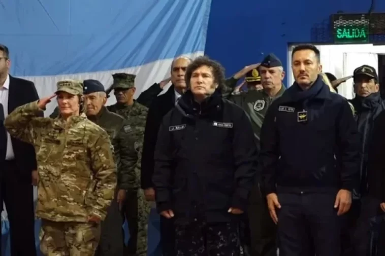 Milei llegó a la provincia sureña junto al ministro de Defensa, Luis Petri, y el del Interior, Guillermo Francos, la secretaria general de la Presidencia, Karina Milei, y Posse a bordo de un avión de la Fuerza Aérea, luego de que el viaje se confirmara este mediodía.