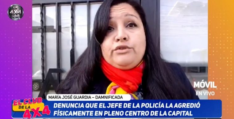 La damnificada relató “Yo me dirigía a tribunales y veo que sale Roque Jaime, me dirigo a hablar con él, y me toma del brazo me tironea hacía abajo y me dice “jefe o no, te voy a cagar matando”. Amenaza con meterme una piña y me termina golpeando en el estómago”.