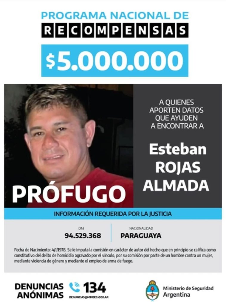 El Ministerio de Seguridad de la Nación ofreció una recompensa de cinco millones de pesos por el prestamista acusado de matar a su pareja en el barrio Zavaleta.