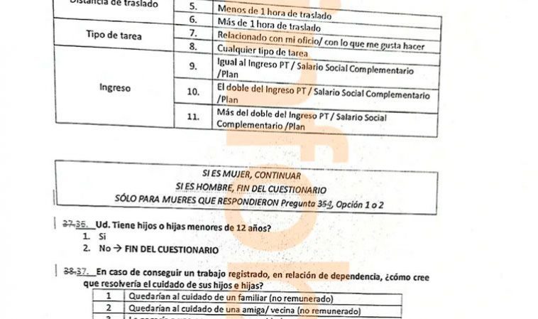 En caso de responder de manera positiva, las personas deberán relatar que tareas realizan y para quien lo hacen. También si son integrantes activos de una organización social y en este caso, deberán confiar si lo hacen en un movimiento oficialista u opositor. Una pregunta que no cumple ninguno de los objetivos planteados en la auditoría. Debería bastar con saber si el beneficiario cumple con sus tareas, no si pertenece a un movimiento de izquierda o de Frente de Todos.