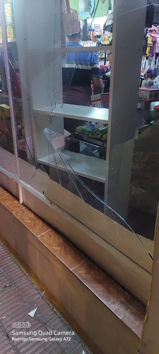 Roberto Cisneros de 64 años, propietario del mismo, manifestó que había salido a las 19:45 hacia la iglesia y al regresar a las 00:15, se percató que la vidriera de dicho local se encontraba dañada por una piedra que habrían arrojado cabe recalcar que dicho propietario no desea realizar presentación alguna a posterior se retiran las unidades del lugar sin alguna otra novedad de relevancia.