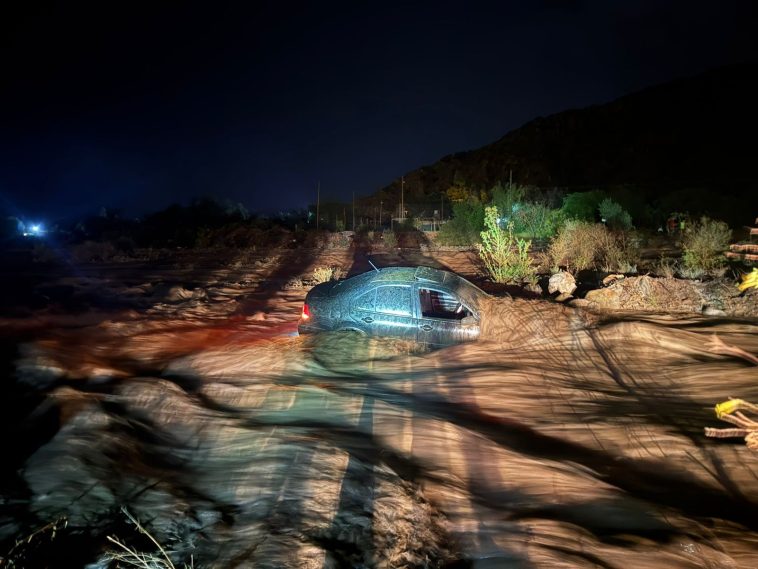 Fuentes policiales informaron que personal del Departamento Especial Antidisturbio y Rescate trabajó en el lugar tras recibir el aviso cerca de la medianoche. Al arribar, constataron que el vehículo había quedado atrapado en la zona por la crecida del río.