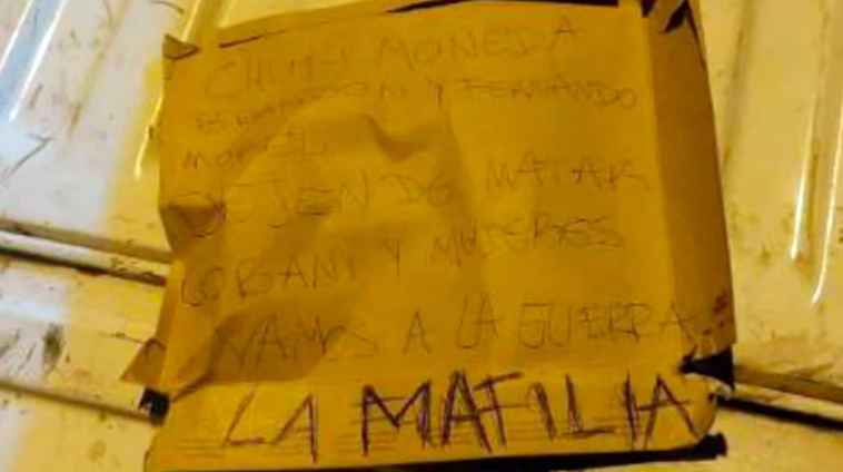 “CHUKI MONEDA BRANDON Y FERNANDO MOREL DEJEN DE MATAR COBANIS Y MUJERES. VAMOS A LA GUERRA, LA MAFILIA”.