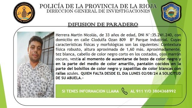Se busca al joven Martin Nicolás Herrera, de 33 años de edad, quien desapareció este lunes.