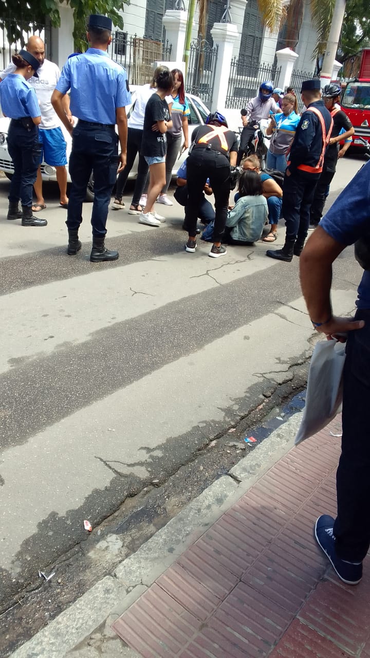 La mujer en su bicicleta se conducía de norte a sur por calle San Martin cuando es impactada por un automóvil cuando el conductor intempestivamente abre la puerta del mismo hiriendo a la joven.