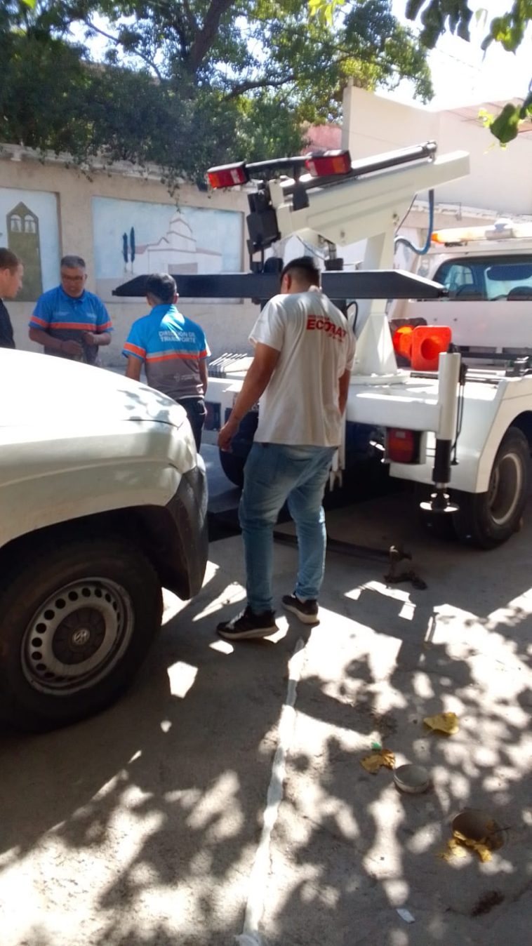 Personal municipal de tránsito debió intervenir en socorro del conductor, retirando la camioneta con la grúa municipal.