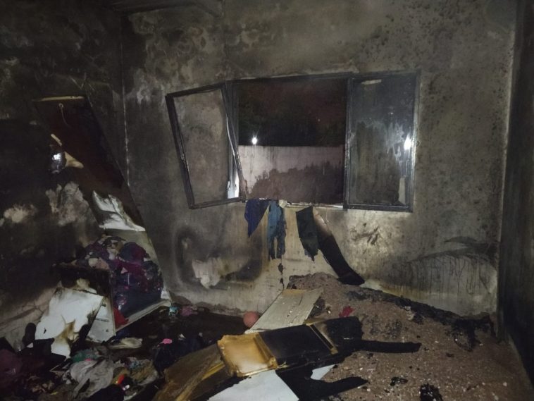 La habitación afectada era de 3×3 mts2 y las perdidas fueron totales (camas, colchones, equipo de musica, muebles y ropa).