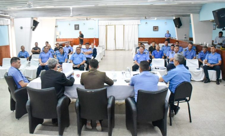 En la mañana del miércoles, el Ministro de Justicia, Seguridad y Derechos Humanos, Miguel Zárate se reunió con los Jefes de las Regionales de la Provincia y las 9 comisarías de nuestra Capital para analizar la situación en cada una de las jurisdicciones, con el objetivo de seguir trabajando en la protección, cuidado de las personas y sus bienes.