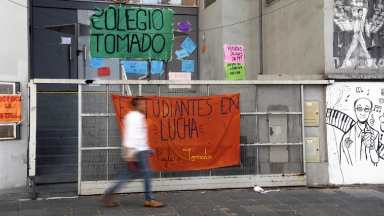 Unas seis escuelas secundarias continuaban tomadas este viernes por sus estudiantes y al menos 15 colegios mantenían medidas de protesta como pernoctes y abrazos simbólicos en reclamo de viandas de calidad nutricional, mejor infraestructura edilicia y en contra de las prácticas laborales obligatorias en empresas, mientras que alumnas y alumnos de la Escuela Superior de Comercio Carlos Pellegrini realizaban un paro estudiantil.