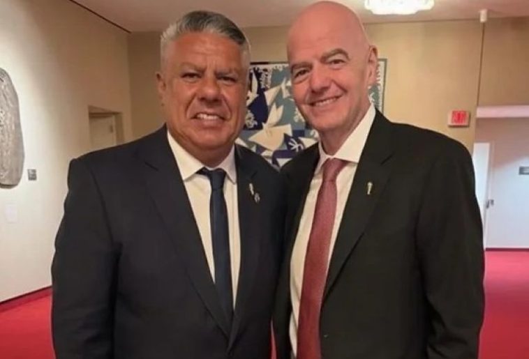 La imagen de Tapia con Infantino fue compartida por el presidente de la AFA en sus redes sociales, donde compartió el siguiente mensaje: “Viviendo la emoción de lo que será una jornada muy especial para el mundo y, especialmente, para todo el pueblo argentino”.