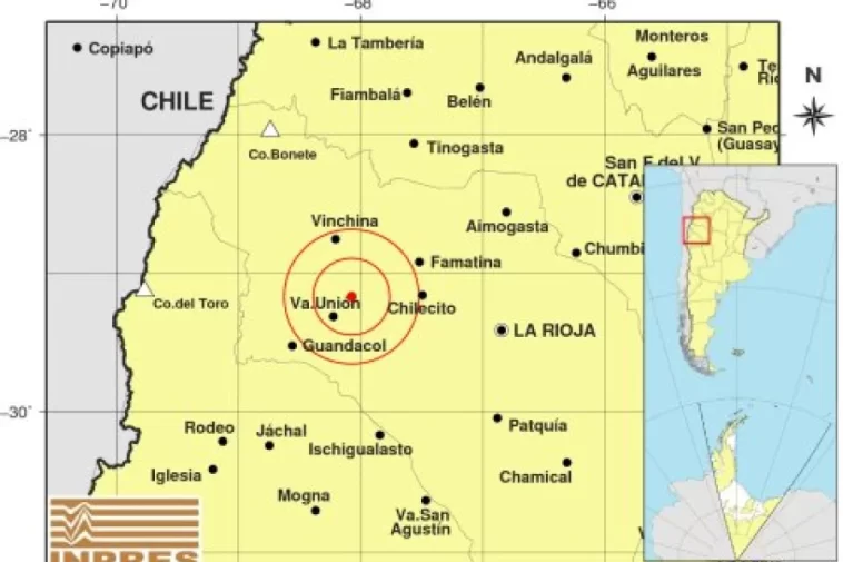 El INPRES puntualizó que el temblor tuvo su epicentro a 48 km al sur de Vinchina, a 56 km al oeste de Chilecito y a 61 km al noreste de Guandacol.