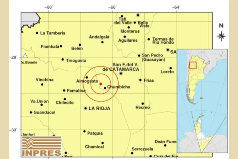 En ese marco, se detalló que el fenómeno tuvo su epicentro a 70 km al SO de San F. Del Valle De Catamarca; 87 km al NE de La Rioja y 18 km al NO de Chumbicha.